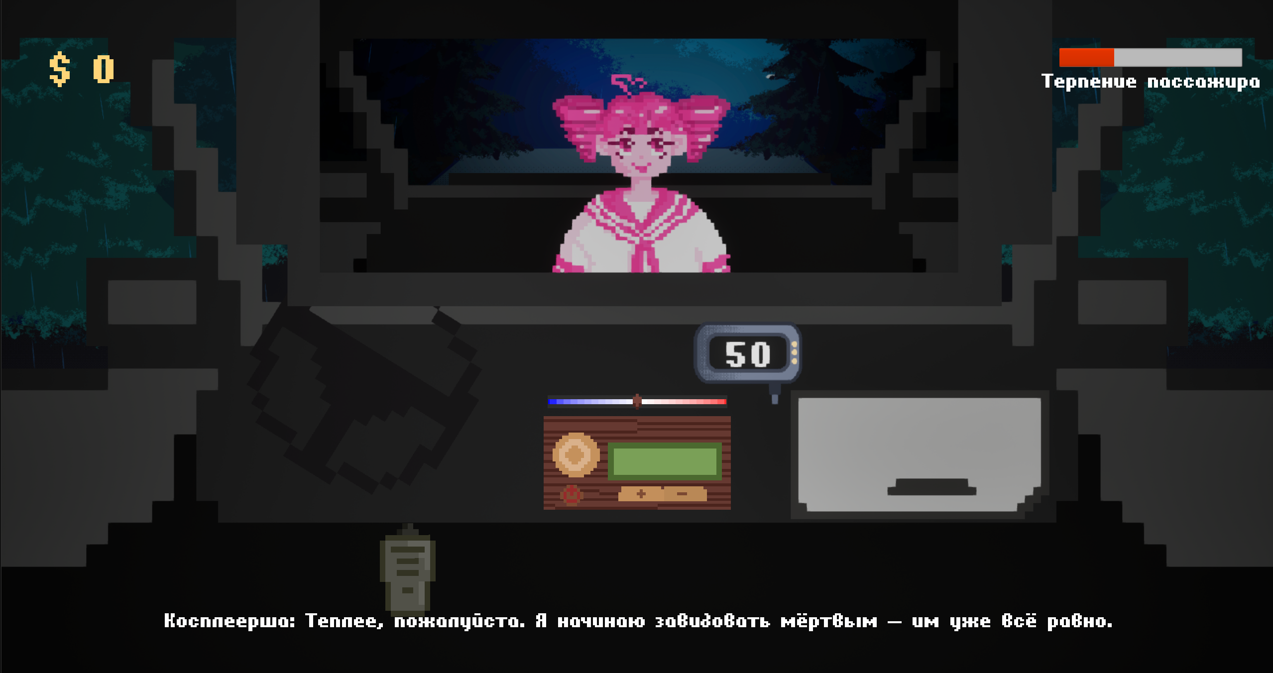 Используя инструменты машины, игрок наблюдает за поведением пассажира и принимает решение: